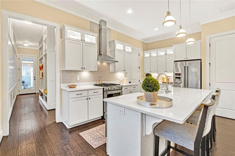 | Discover Patrick Square's premier townhome, perfectly situated on Thomas Green Blvd. across from the lush green community space and the corner of Hardin Ave. This former model home offers front porch charm with custom upgrades and accents. You can’t help but notice the enhanced and defined living spaces with built-ins, elegant moldings, and luxurious finishes. Professionally Designed and Move-in ready for new owners. Its prime location is just a short walk to shops and dining, with amenities including a modern clubhouse, lakeside lodge, pools, walking trails, and organic gardens. Enjoy low-maintenance living in Tiger Town. Ideal everyday living or perfect weekender. The main level master suite boasts a walk-in shower, while two upstairs bedrooms provide plenty of space for guests. Don’t miss this opportunity—call today for a personal tour! |