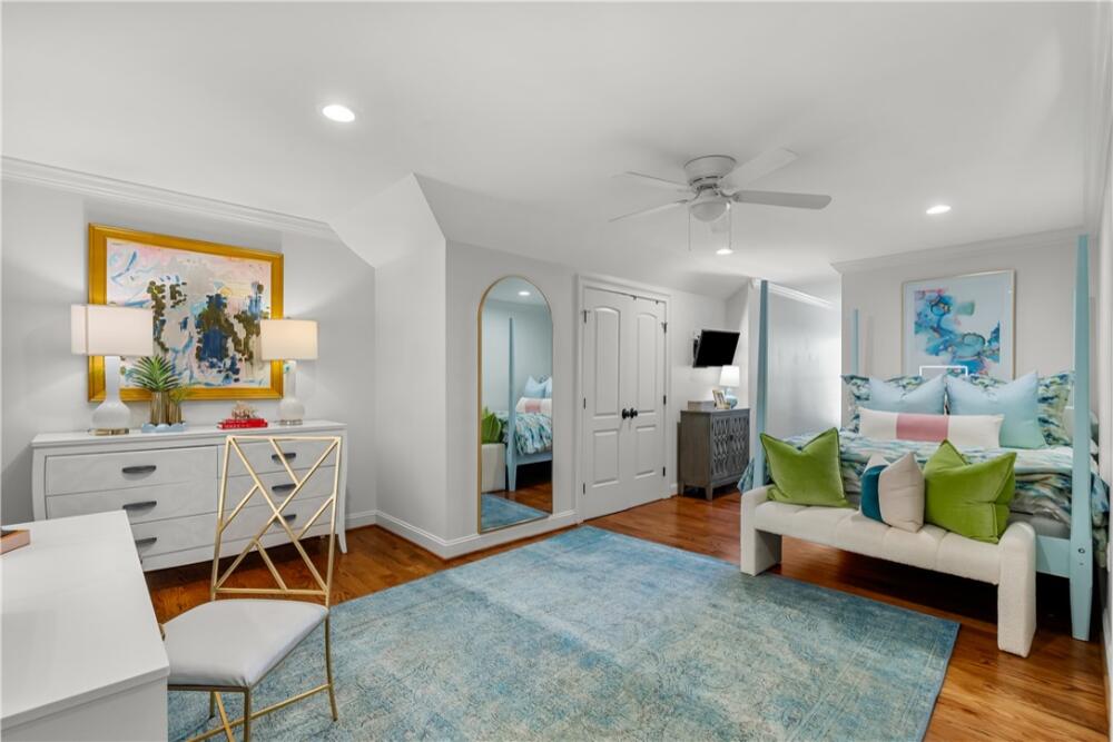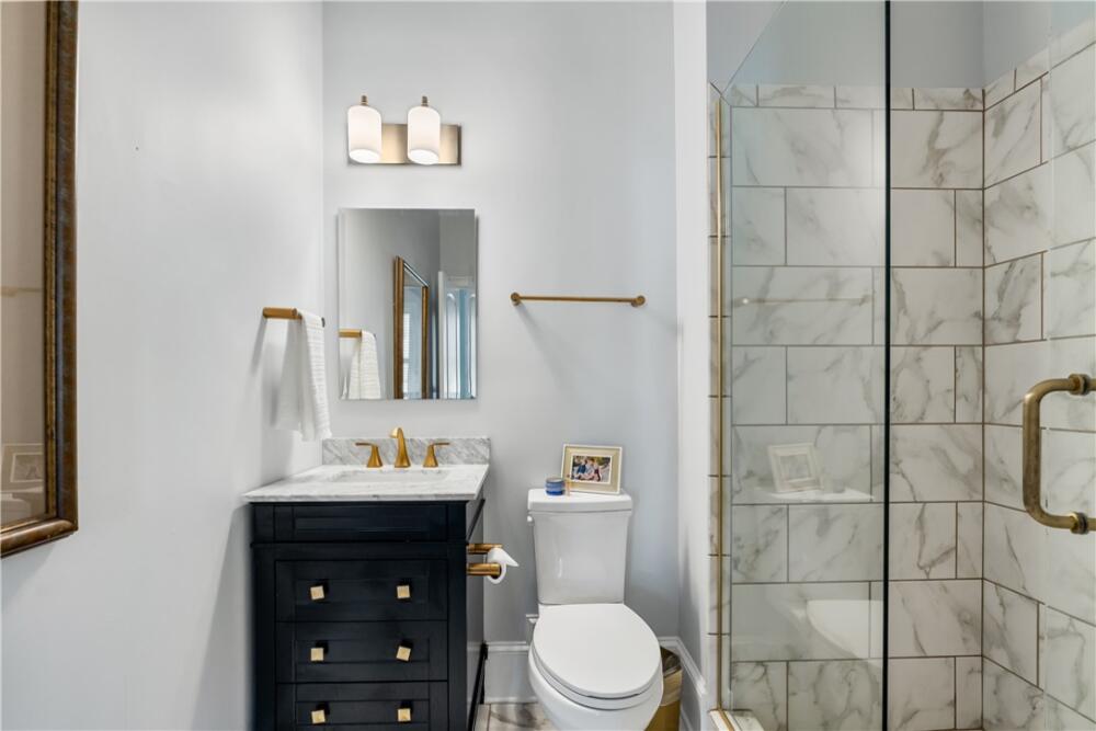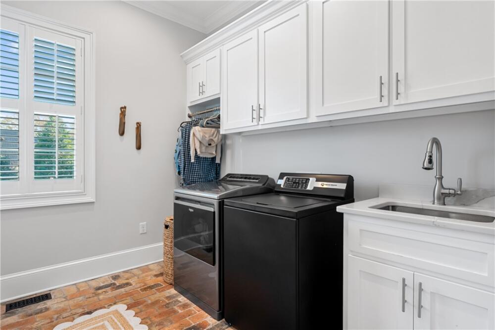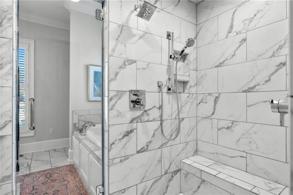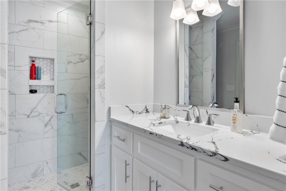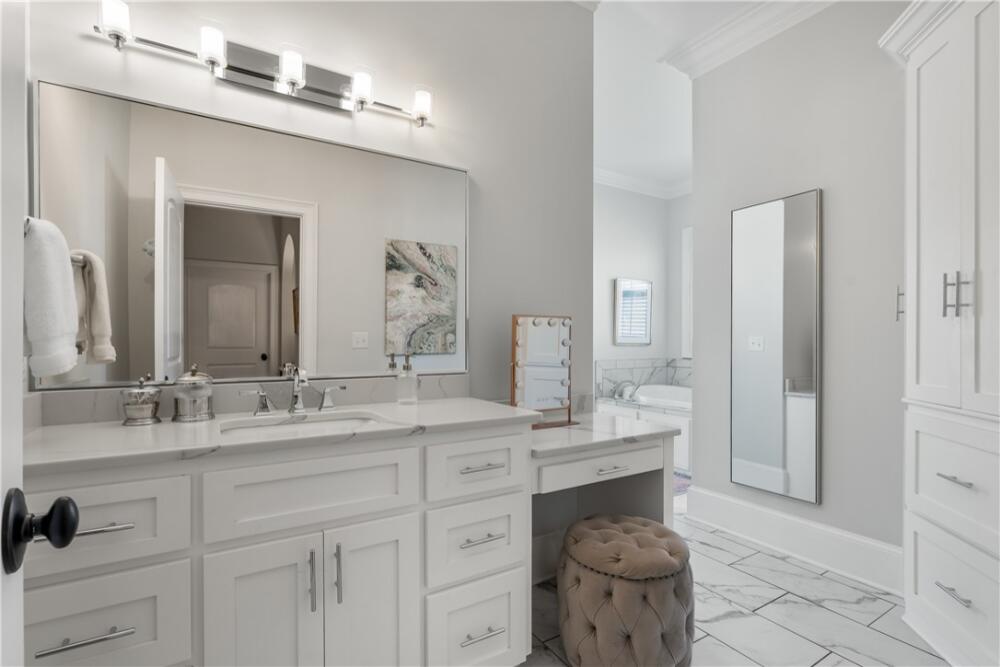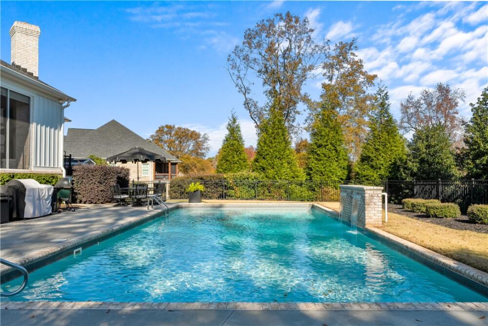 Stunning Custom Home in an Exclusive Gated Neighborhood! Discover luxury living in this exquisite 5 bedroom 5 bath home where every bedroom has its own private bath for comfort and convenience. Designed with elegance and functionality in mind, this home offers a seamless open-concept living room and kitchen perfect for both every day living and entertaining! The gourmet kitchen features a gas cooktop with pot filler, quartz countertops, wine fridge and an oversized eat-in bar. The impressive primary suite offers ultimate luxury with dual bathrooms including a steam shower that connects between the two. Two additional bedrooms on the main level have their own private baths. Upstairs you will find a bonus room, two large bedrooms with ensuite baths, and a heated and cooled storage room with access to the attic. The custom details in this home are not to be matched with gorgeous hardwood floors, plantation shutters throughout, ornamental crown molding, oversized baseboards and beautiful finishes throughout. Step outside to the screened porch complete with a wood burning fireplace and electric shades ideal for year round enjoyment! The porch overlooks a stunning in-gound pool with a serene water feature creating the perfect backyard oasis. A half bath is conveniently located on the back of the house to keep guest from having to enter the home while enjoying the pool! A four bay garage gives plenty of space for all drivers as well as all of your toys! This highly desirable neighborhood also offers lake access with a community dock. The serene surroundings and premium amenities gives this home the best of craftsmanship and modern convenience!