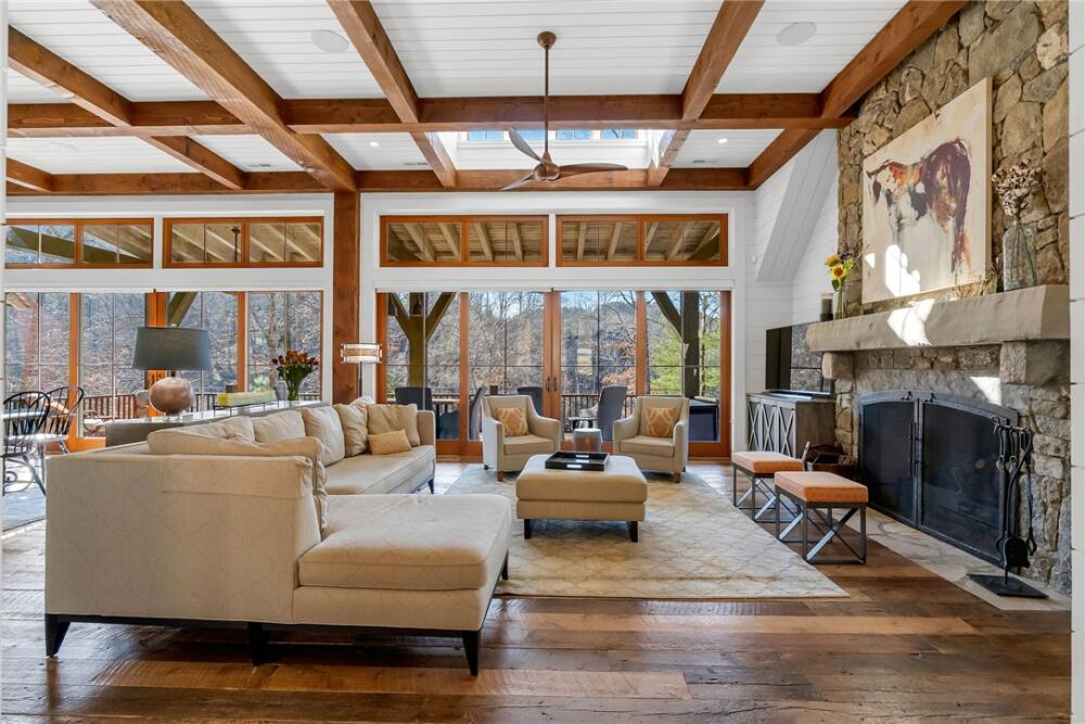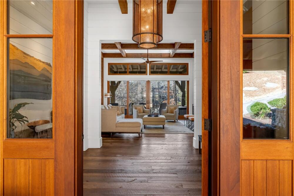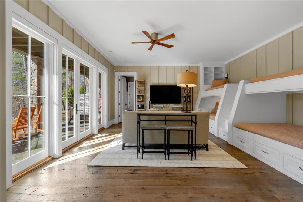 Nestled at the end of a quiet cul-de-sac in The Cliffs at Keowee Springs, this exceptional waterfront retreat offers privacy, craftsmanship, and effortless lake living. Built in 2015 by INEO Builders, the home spans 4,694 square feet and is thoughtfully designed to maximize comfort, functionality, and serene lake views. Set on a 1.17-acre lot with an impressive 283 feet of shoreline, the property features gently sloping terrain leading to a custom dock with boat lift, perfectly positioned on a peaceful swimming cove. An expansive back deck overlooks the water, creating an ideal setting for entertaining or quiet evenings by the lake. The main level showcases a luxurious primary suite complete with a spa-inspired steam shower and his-and-hers walk-in closets, along with beautifully appointed living and dining spaces. The home offers four bedrooms and four-and-a-half baths, including a private guest suite over the garage with a separate entrance, kitchenette, and full bath – ideal for extended family or visitors. The lower level features a bunk room or flex space with French doors opening to a covered outdoor patio, seamlessly blending indoor and outdoor living. An additional approximately 600 square feet of heated, unfinished space provides endless potential for a media room, golf simulator, or home gym. Additional highlights include a two-car garage with a dedicated third bay for a golf cart, a fully fenced turfed dog run, and a setting that perfectly balances privacy with access to world-class Cliffs amenities. This is a rare opportunity to own a thoughtfully designed waterfront home in one of Lake Keowee’s most sought-after communities. A club membership at The Cliffs is available for purchase with this property giving you access to all seven communities.