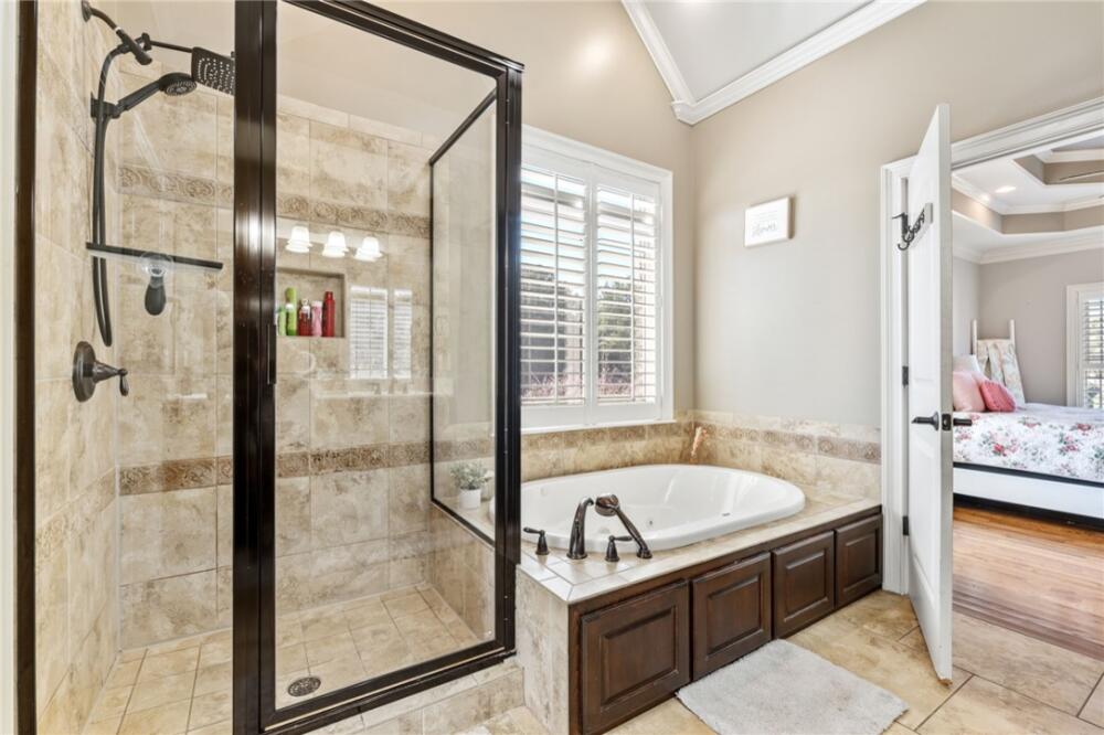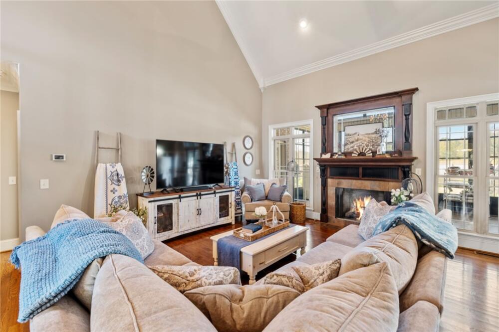 Incredible value, backyard oasis! Welcome to this stunning custom-built home located in the highly desirable Brookstone Meadows community! This move-in ready property is brimming with upgrades and designed for both elegance and comfort. From the moment you arrive, you'll notice the beautifully landscaped yard with custom lighting and stately front door. Inside, a grand two-story foyer with a beautiful staircase welcomes you. Gleaming hardwood floors, soaring ceilings, and thoughtful architectural details flow throughout the main level. The spacious master suite is conveniently located downstairs and offers a luxurious bath with a separate soaking tub, walk-in shower, and a large custom walk-in closet. An additional bedroom and full bath on the main level provide flexibility for guests or a home office. Plantation shutters add timeless elegance. The living room is anchored by a cozy fireplace and enhanced with surround sound, while the home also includes central vacuum, epoxy-coated garage floors, and custom closets throughout. Upstairs, you'll find a large bonus room, two additional bedrooms, and a full bath. A brand-new Trane HVAC system upstairs ensures comfort year-round. The beautiful and functional sunroom welcomes you into the fully fenced, private backyard oasis, designed for entertaining. The outdoor space is truly exceptional, featuring a brand-new Trex deck with modern cable railing, raised garden beds, a natural gas firepit, and a top-of-the-line 6' Mont Alpi natural gas grill with rotisserie and fridge-an entertainer's dream! At the heart of the backyard is a newly installed, heated saltwater pool with a diving rock and a soothing waterfall, all controlled effortlessly by an app. Living in Brookstone Meadows means more than just a beautiful home, it's a lifestyle! The community offers resort-style amenities including golf, a pool, tennis and pickleball courts, a clubhouse, and an on-site restaurant and award winning Wren schools. This home truly has it all-luxury, comfort, and a backyard oasis designed for entertaining and relaxing. Don't miss the chance to make it yours!