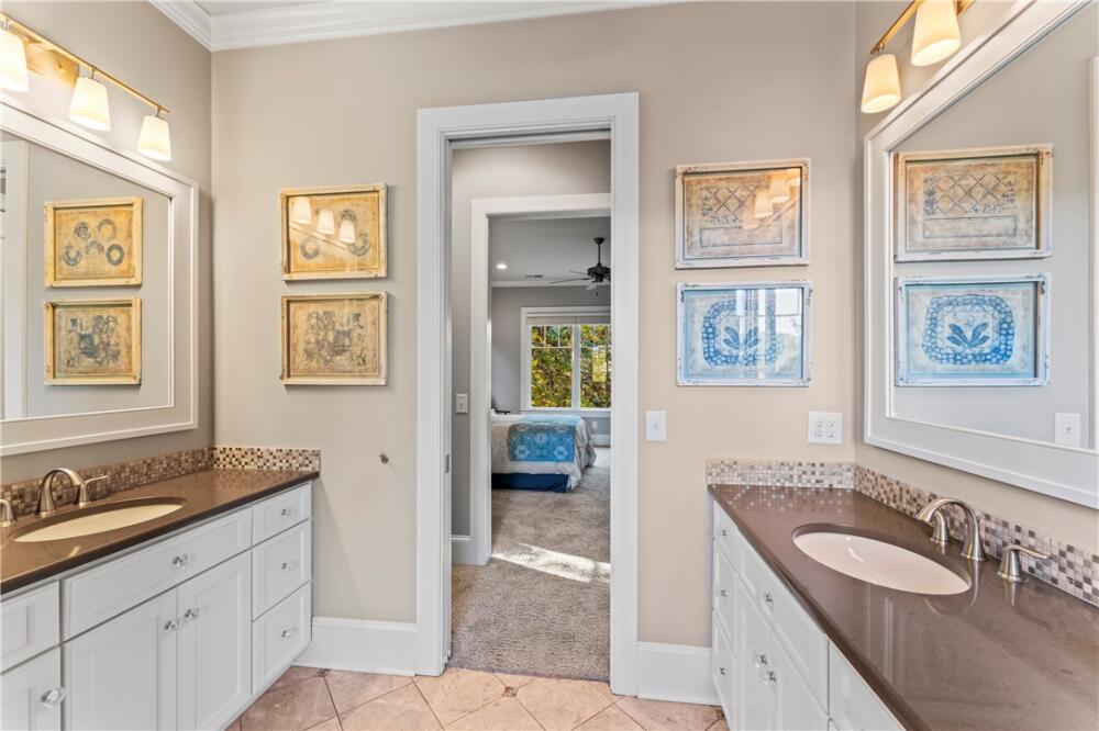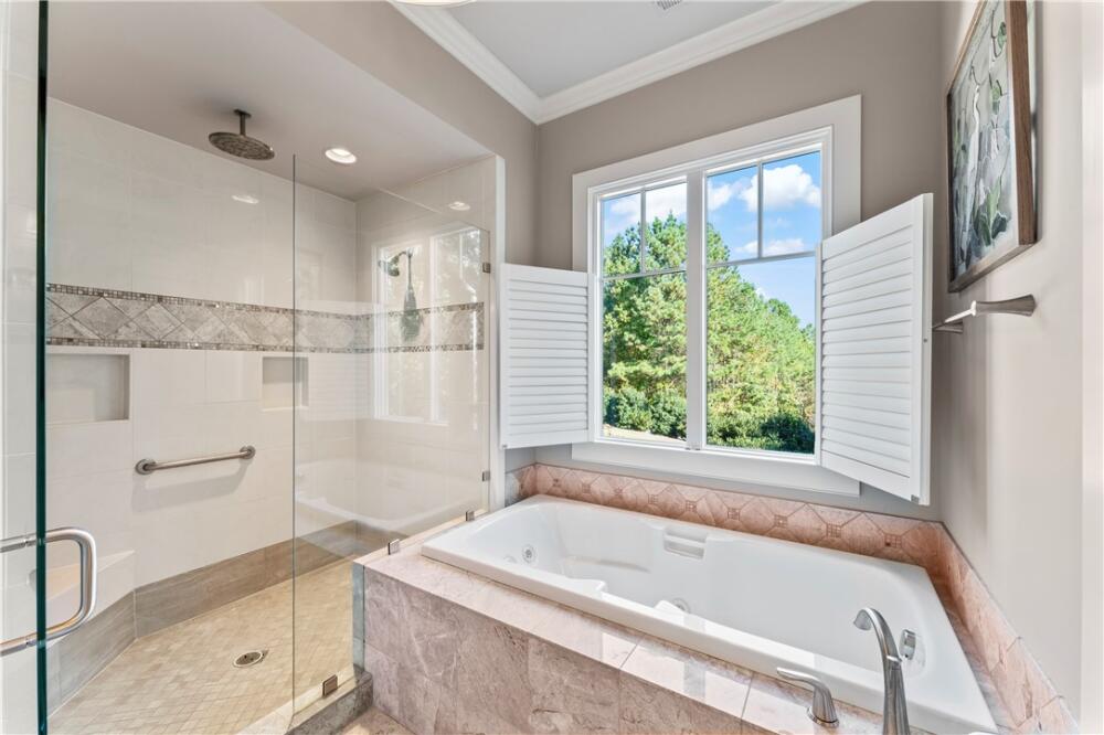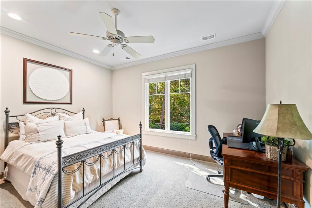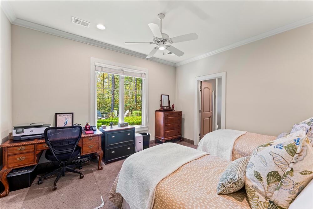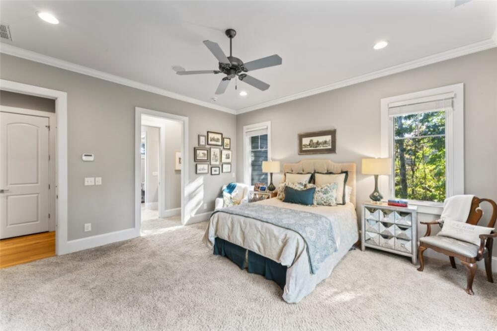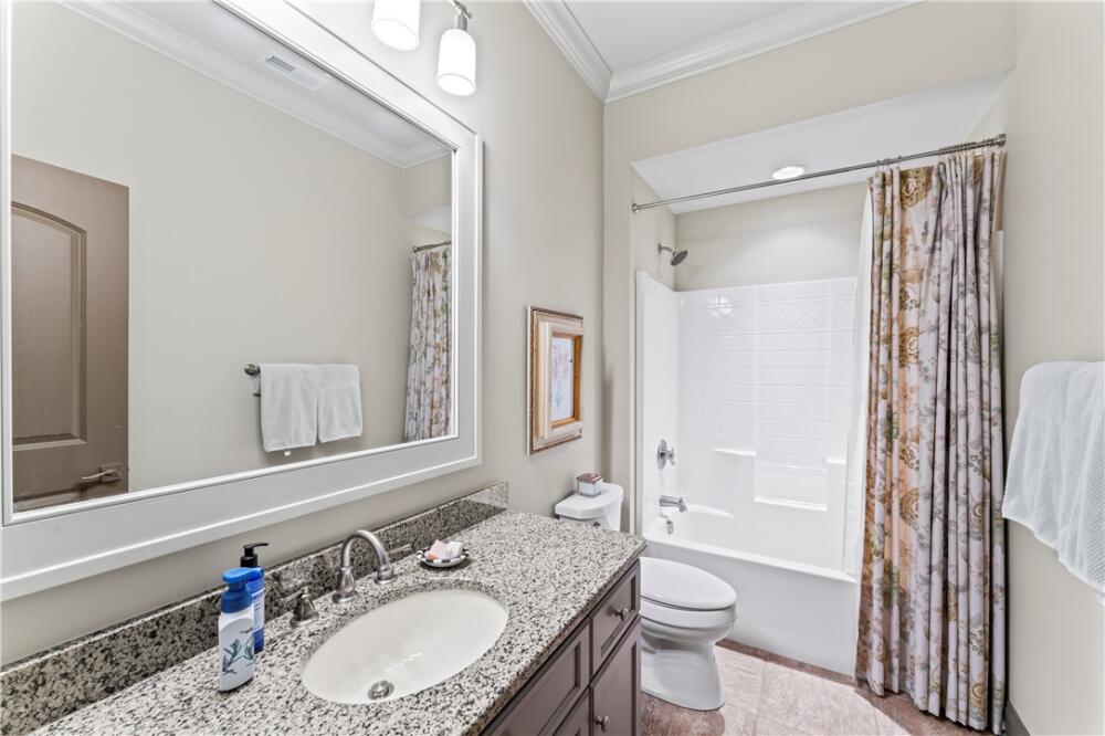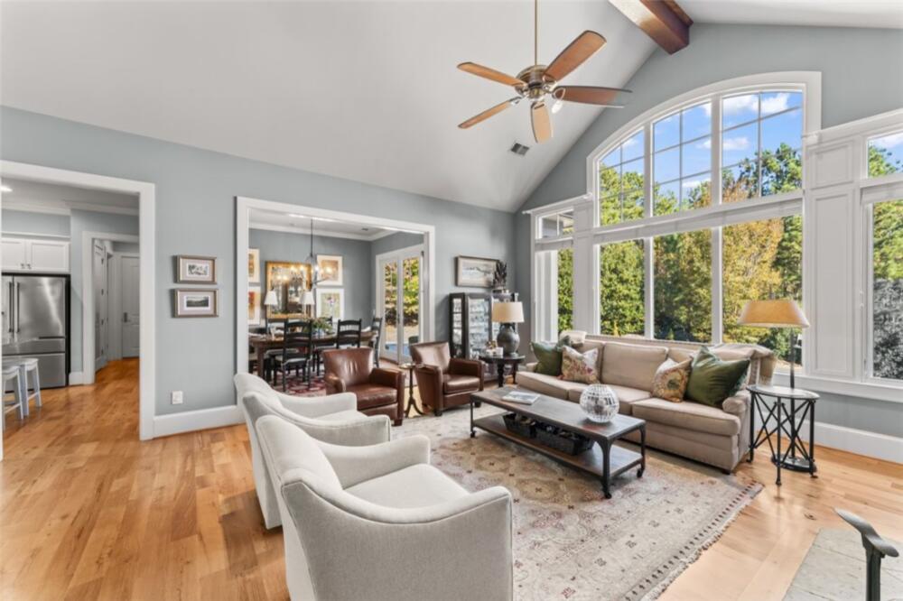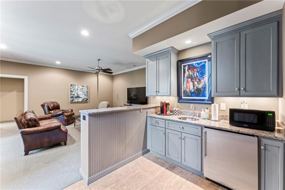 Perched high in Old Edwards Reserve at Lake Keowee, 120 Golden Bear captures the essence of mountain living, where timeless design meets effortless comfort. This home offers a Sports Level Membership, which can be upgraded to Premier Level if desired. Situated on one of the community’s higher-elevation lots, this stunning home captures breathtaking sunrise views over the mountains and offers convenient access to all amenities—just a quick golf cart ride away. Step inside and be greeted by natural light streaming through oversized windows at both the front and back of the home. The open floor plan allows for a seamless flow between the great room, kitchen, dining area, and hearth room. The spacious great room features a stacked-stone fireplace framed by stunning mountain views beyond. In the newly renovated kitchen, you’ll find a larger island, granite and quartz countertops, a Wolf gas range, wine cooler, double-door oversized refrigerator, deep sink with new faucet, retrofitted cabinet with pull-out mixer storage, and a walk-in pantry. The spacious primary suite is a true retreat, offering a quiet space to relax, a spacious double vanity in the bath, and a walk-in closet outfitted with custom built-in shelving for effortless organization. The hearth room, with its stone fireplace, offers an inviting space for entertaining or a quiet spot to enjoy peaceful wooded vistas. The main level also includes an extended grilling deck, a laundry room with built-in sink and cabinetry, and an oversized two-car garage with golf cart storage. Downstairs, the 9-foot ceilings and open layout continue, with a spacious recreation room, wet bar, and refrigerator—ideal for hosting friends and family. The lower level offers a private ensuite guest bedroom, an additional bedroom with bath, and a flex room perfect for a gym, office, or playroom. Step outside to your fenced private backyard oasis. A gentle waterfall adds a serene, natural touch to the landscape, creating the soothing sound of flowing water and enhancing the property’s tranquil ambiance. The outdoor area is complete with a covered patio and a flagstone path leading to a large fire pit, where you can enjoy cozy evenings surrounded by quiet woods. The current owners have made numerous upgrades, including but not limited to: Installed a whole home Generac generator (2022); renovated the kitchen (2023); renovated Hearth room (2023); enlarged grilling deck off kitchen and added steps leading down to the back yard(2021); Installed 3 level waterfall, flagstone steps and pathway in backyard (2022); New A/C installed for first floor (2024); Installed Versa Lift for direct attic access (2021); Refinished main floor wood floors (2024); Repainted interior walls (2022); Fenced in backyard (2021) and more! A whole list is available in the supplements section of the listing. A complete list is available in the supplements section of the listing. This home’s exterior is nearly maintenance-free, featuring Hardie Plank siding, a slate shingle roof, and a full sprinkler system. Experience the perfect blend of mountain serenity, luxury living, and community connection at 120 Golden Bear—your next chapter begins here. A membership must be purchased at closing, providing access to world-class amenities, including a Jack Nicklaus Signature Golf Course, a state-of-the-art clubhouse, a resort style swimming pool, a marina, tennis and pickleball courts, a fitness center, and multiple dining options.