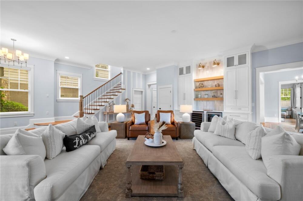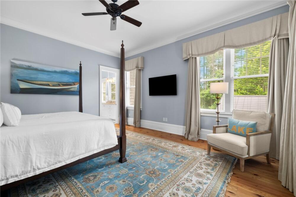 Nestled in the heart of Old Edwards Reserve at Lake Keowee, 129 North Lawn Drive is a meticulously crafted Craftsman-style residence designed by renowned architect Keith Summerour. This 6-bedroom, 5.5-bathroom home spans 3,823 of finished square feet, and offers unparalleled access to the community's world-class amenities, including the marina, pool, tennis courts, and Orchard House. The home boasts 11-foot ceilings, heart pine floors, and an open floor plan that invites natural light, creating an ideal setting for both relaxation and entertainment. The chef's kitchen features top-tier appliances such as a GE Monogram refrigerator, Dacor 6-burner gas range with double oven, and a wine cooler. Outdoor living is enhanced by a deep, wraparound porch with exposed rafters and a corner fireplace, as well as a cozy all-season Florida room, currently being utilized as an office, with a wood-burning stove. The primary suite, conveniently located on the main level, offers privacy and comfort. Upstairs, you'll find three en-suite bedrooms, a bonus/bunk room, and a sleeping porch, while the lower level includes the sixth bedroom and bath, with additional 1100 square feet of unfinished space ready for customization. High-efficiency HVAC systems, a particle air filtration system, and a mesh Wi-Fi network ensure modern comfort throughout. This home is eligible for The Reserve’s Lodging Program, allowing you to start enjoying this exceptional property immediately. To be sold mostly furnished. The $100,000 non-refundable initiation fee for the Premier Membership is required at closing.