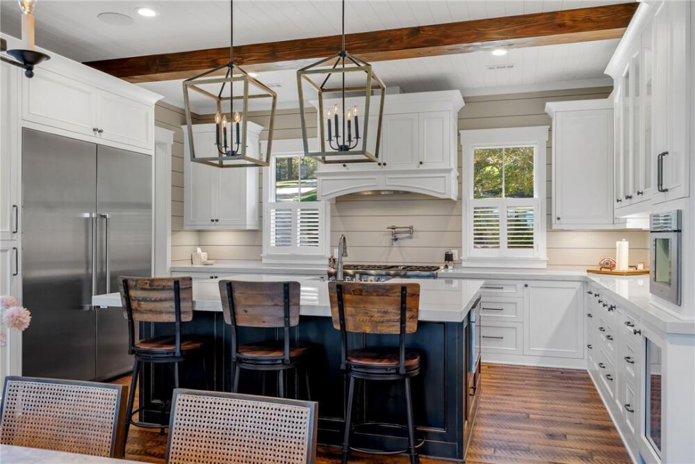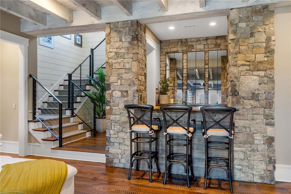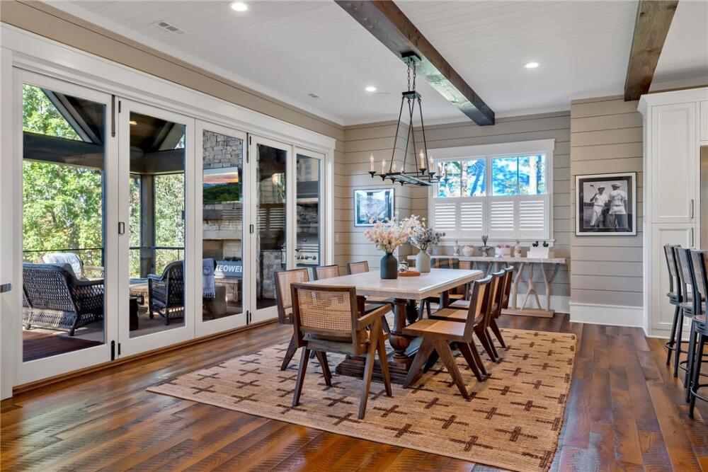 Nestled along the pristine waters of Lake Keowee in the coveted Cliffs at Keowee Springs community, this stunning Dillard Jones–built lakefront residence blends refined craftsmanship with relaxed, modern mountain living. Completed in 2018 and impeccably maintained, this 5,017-square-foot home captures sweeping, open-water views and offers effortless proximity to all Springs amenities – including the clubhouse, fitness center, Beach Club, pickleball and tennis courts, and dog park – just a short walk or golf cart ride away. Inside, rustic wood flooring, soaring ceilings, and custom finishes set the tone for timeless sophistication. The gourmet kitchen is a chef’s dream, featuring Cambria countertops, Thermador appliances, and a built-in espresso machine, complemented by a spacious butler’s pantry with abundant storage and a separate freezer. With five bedrooms (four ensuite) including a custom bunk room, five full baths, and two powder rooms, the home comfortably accommodates family and guests. The main level’s screened porch – complete with a stone fireplace, built-in grill, Ipe decking, and remote retractable screens – creates a seamless indoor-outdoor living experience. The lower level is made for entertaining, boasting a custom bar with granite countertops, an ice maker, bar fridge, dishwasher, and sink. Step outside to your private lakefront oasis featuring a heated infinity pool, hot tub, stone firepit, and putting green – perfect for taking in the sunset over Lake Keowee. Additional highlights include a 2.5-car garage, Savant Smart System, full-house generator, and an upgraded dock with steps, bench seating, dry storage, lift bags for larger boats, and a new waverunner port. This exceptional home is being sold fully furnished, offering a true turnkey opportunity. Every detail has been thoughtfully curated to deliver modern luxury, total comfort, and effortless elegance - all just steps from the heart of The Cliffs at Keowee Springs. A club membership at The Cliffs is available for purchase with this property giving you access to all seven communities.