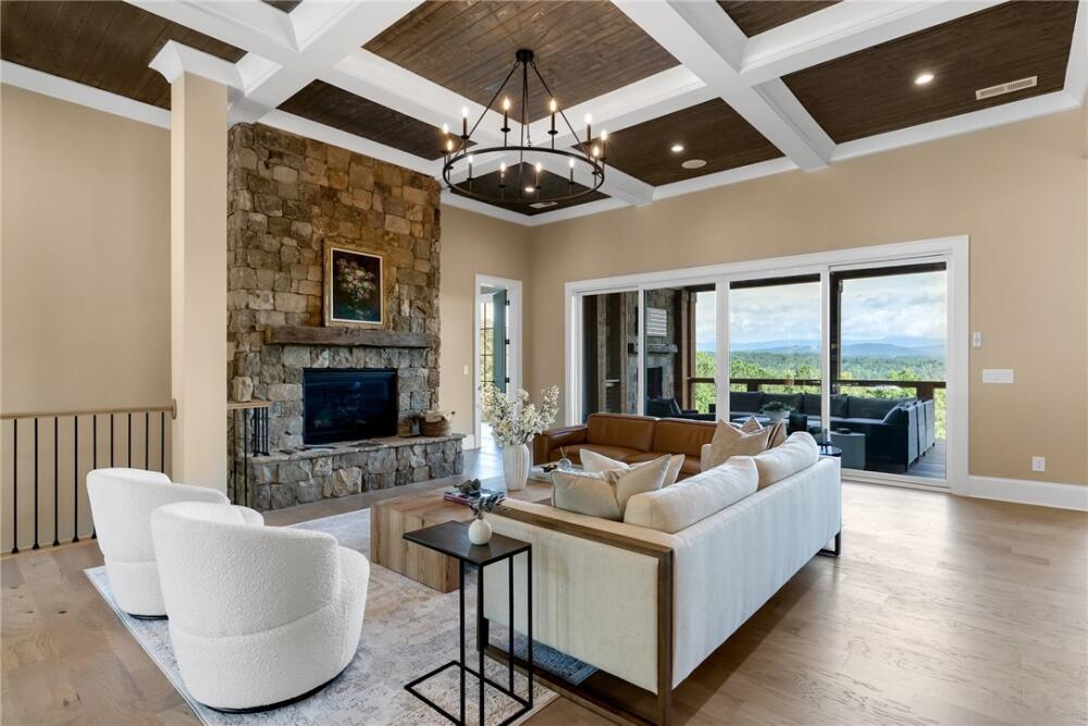 Experience breathtaking mountain vistas and refined mountain living in this beautifully crafted home located in the prestigious community of The Cliffs at Keowee Falls. Perfectly positioned just a short golf cart ride from world-class amenities and Waterfall Park, and conveniently close to the south gate for quick access to Seneca, this residence offers both tranquility and accessibility. Designed with open-concept living in mind, this 5-bedroom, 5 full bath, 1 half bath home showcases a spacious layout filled with natural light, high-end finishes, and timeless style. The main living area features a dramatic floor-to-ceiling stone fireplace, expansive windows that frame the mountain views, and a chef’s kitchen with a large center island, walk-in pantry, and luxury appliances. The adjacent dining space opens to a covered back deck complete with an outdoor fireplace—ideal for year-round enjoyment. On the main level, you’ll find both the elegant primary suite and a guest suite, along with a dedicated home office. The lower level includes two additional guest suites, a generous entertainment area with wet bar, a flexible bonus room perfect for a home theater, game room, or gym, and a second outdoor living space with a fireplace. Above the oversized garage, a spacious guest suite with a private bath and walk-in closet offers additional comfort and privacy. With hardwood flooring, granite countertops, ample storage, and exquisite architectural details throughout, this home seamlessly blends luxury and livability in one of Lake Keowee’s most sought-after communities. A Club Membership at The Cliffs is available for purchase with this property giving you access to all seven communities.