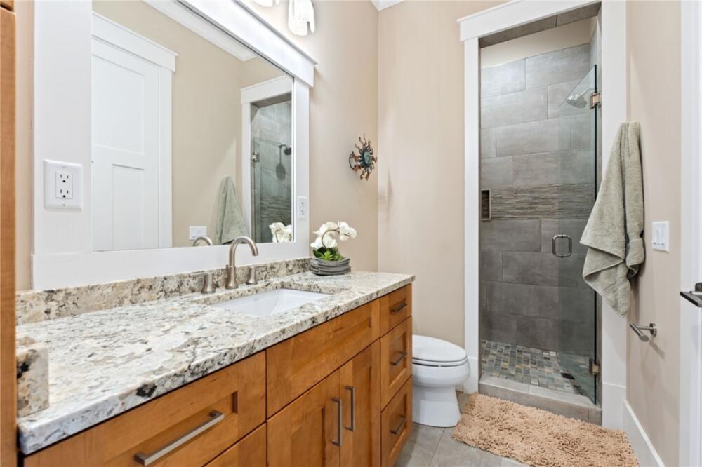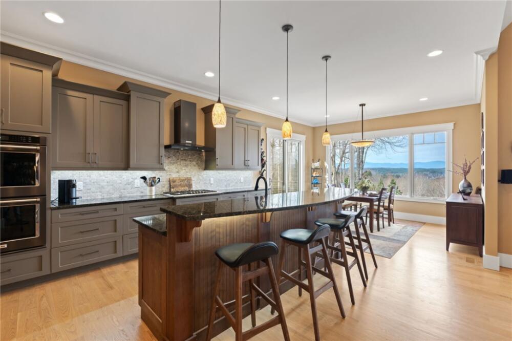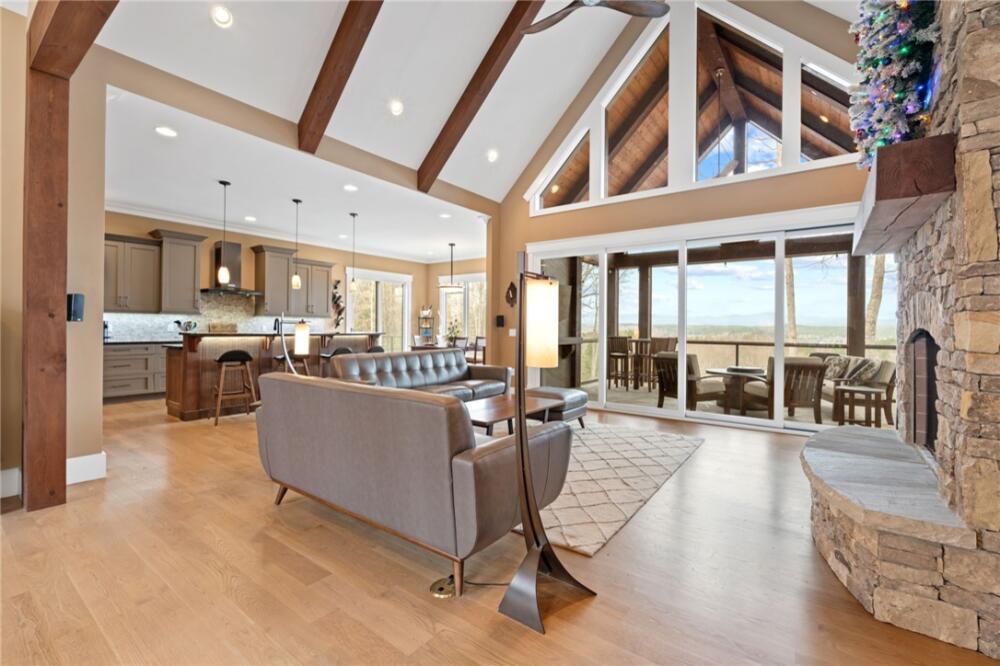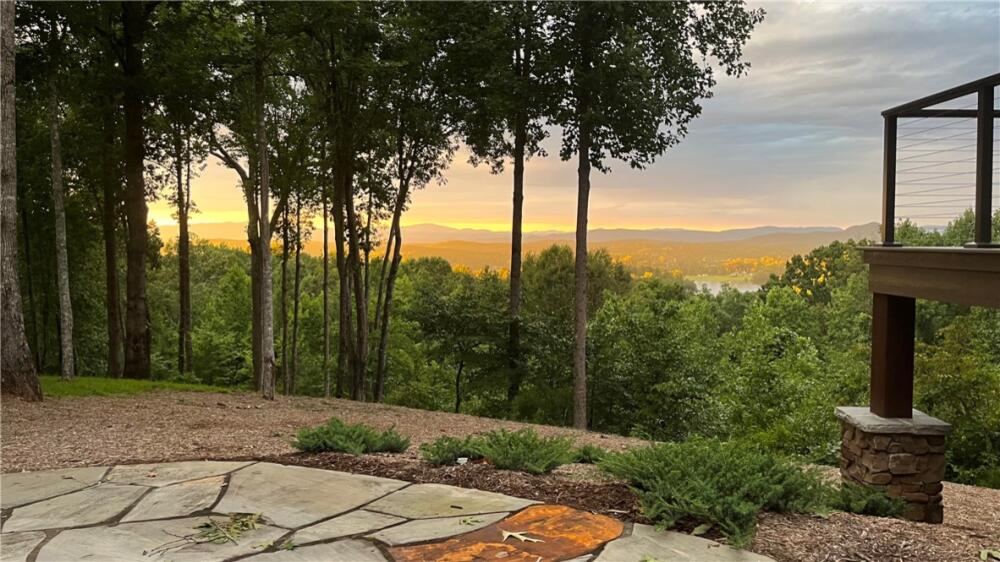 Picturesque mountain rustic home in the Cliffs of Keowee Springs combines a private wooded setting with captivating mountain and lake views from nearly every room. Built by Hillcrest Homes, the home sits on two lots totaling over five acres in The Cliffs at Keowee Springs. This property is ideal as a primary residence for a small family or an exceptional getaway retreat. The main level includes a great room, kitchen, dining area, primary bedroom suite, and powder room with site-finished, white oak hardwood flooring throughout. The open concept great room features vaulted ceilings, a dramatic stacked stone fireplace and clerestory windows that fill the space with natural light. Panoramic sliding doors open to a spacious screened porch with natural flagstone flooring, creating a seamless connection to outdoor living. The kitchen is well appointed with black stainless steel appliances, double ovens, a gas cooktop, and a generous island with breakfast bar. Just off the adjacent dining area, a flagstone patio offers the perfect place to enjoy a fire or sip morning coffee. The primary bedroom is a private retreat with panoramic views. The en suite bathroom offers dual vanities, a walk-in shower, and a separate water closet. The spacious walk-in closet includes custom shelving along with a window seat. The laundry room is conveniently located adjacent to the primary bedroom. The lower level walkout is thoughtfully designed to accommodate family and guests and also offers long-range mountain views from every window. A multipurpose recreation area includes a wet bar with a wine chiller and built-in cabinetry. Two bedrooms are located on this level, allowing one to be easily used as a home office, along with one full bathroom. An unfinished storage area provides a generous amount of additional storage space. This home is just minutes from the front gate and clubhouse and is offered in pristine condition. It presents an outstanding opportunity for those looking to downsize while continuing to enjoy the benefits of a Cliffs membership. Membership privileges provide access to exceptional amenities across seven clubs throughout South and North Carolina, including award winning golf courses, fine dining, wellness centers, tennis and pickleball courts, and more.
