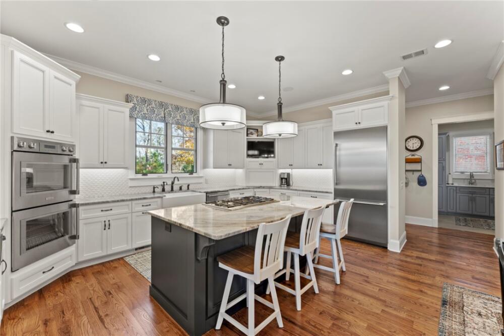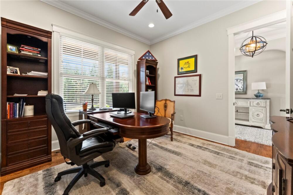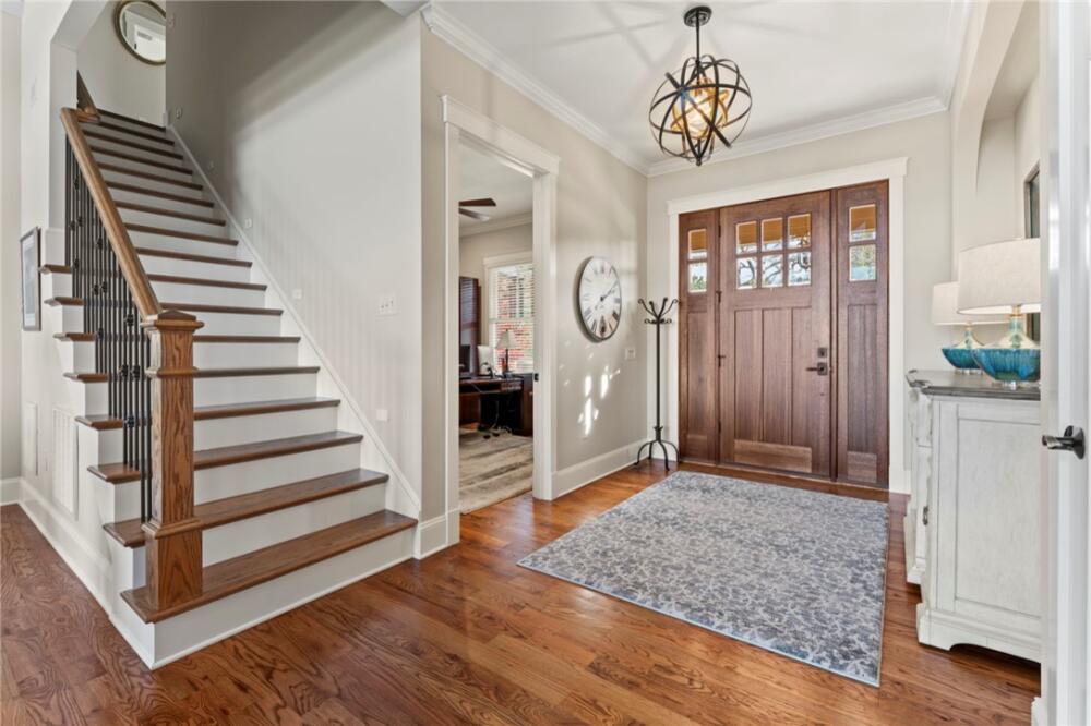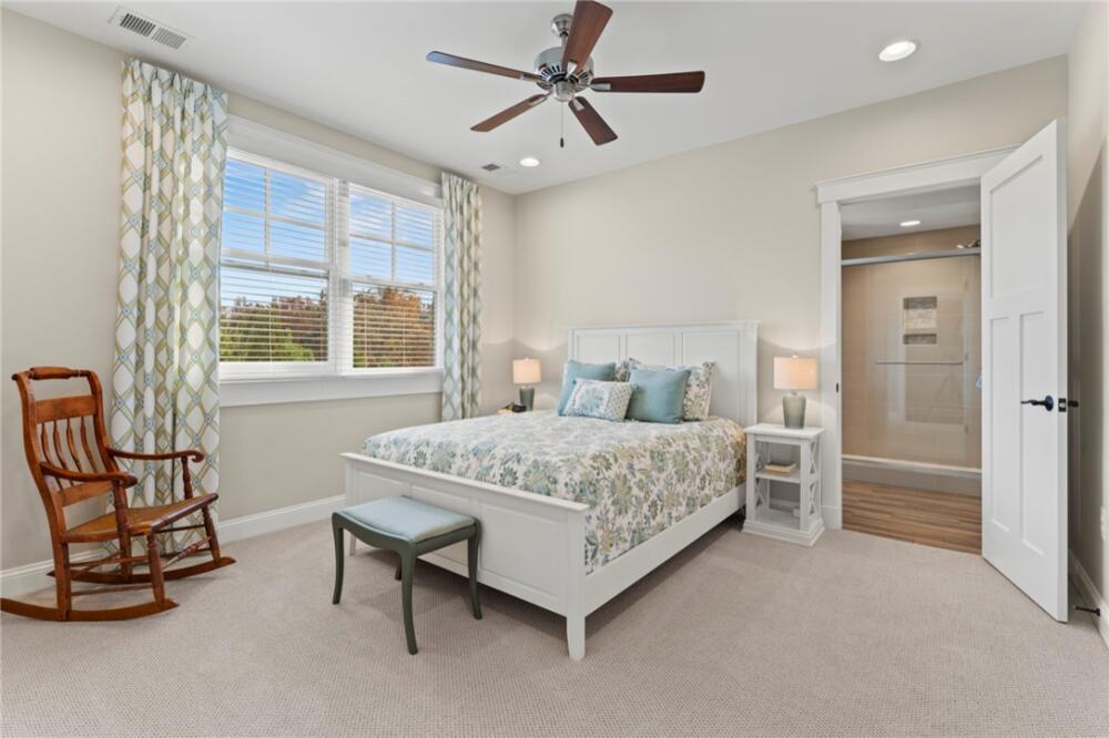 Perched high above, 551 Cliffs Vista Parkway offers sweeping long-range mountain views, refreshing mountain air, and convenient access to all the amenities that define the Cliffs at Keowee Springs lifestyle. Ever-changing vistas showcase the beauty of each season, creating a stunning backdrop from sunrise through sunset. Set on 1.87 acres, this homesite blends manicured landscaping with native hardwoods and pines, complemented by a large grassy lawn ideal for entertaining, hosting outdoor games, or just enjoying a relaxed evening gathered around the firepit. The elevated driveway and upper parking area enhance privacy, while additional convenient parking near the garage makes welcoming your guests easy. Built by Brad Kisker, this custom home is thoughtfully crafted for both family comfort and flow. The main level serves as the natural gathering space, featuring the primary suite, study, great room, kitchen, dining area, sunroom, laundry, and mudroom—all unified by warm wood flooring. The great room impresses with vaulted ceilings, a stone fireplace with gas logs, and custom built-in bookcases. Sliding screened doors extend the living space to the covered back porch, seamlessly blending indoors and out. Great for entertaining on beautiful days! The sunroom quickly becomes a favorite retreat—ideal for morning coffee, afternoon reading, or taking in the mountain sunsets. Remote-controlled shades in both the sunroom and kitchen allow the light to be tailored throughout the day. The kitchen is designed to inspire, whether for everyday meals or hosting friends and family. It features stainless steel appliances, an island with gas cooktop, double ovens with swing-style doors, a warming drawer, a walk-in pantry, and captivating views that elevate even the simplest tasks. Nearby, the main-level laundry includes a sink, abundant cabinetry, and direct access to the mudroom and garage. The primary suite is a peaceful retreat, complete with a spa-like bath with a rain shower and handheld features, dual vanities, and separate walk-in closets. Upstairs there are two guest bedrooms with their own ensuites and plush carpeting. A spacious unfinished walk-in attic is down the hall and offers easy access with a ton of storage. Outdoor living is a natural extension of the home. A covered patio, expansive grass lawn, and paver firepit create inviting spaces for both quiet moments and lively gatherings, all framed by panoramic mountain views. Full front and rear irrigation ensure the landscape remains pristine with minimal upkeep. Location is everything, and this home places you just moments from the exceptional amenities of The Springs and The Landing. Enjoy the Tom Fazio–designed golf course, clubhouse dining, fitness center, pickleball and tennis courts, scenic walking trails, and stroll to the soon-to-open Bistro Café for coffee and pastries. The nearby Beach Club offers a restaurant, pool, and lake and beach access with paddleboards and kayaks, while the Lake Club features two additional pools, dining, wellness classes, and direct access to Lake Keowee. For those interested in time on the water, boat slip leasing opportunities are available through the Keowee Springs POA. Conveniently located near the main gate of The Springs, the home offers easy access in and out of the community, with short drives to Six Mile, Pickens, Seneca, and Clemson, as well as straightforward access to downtown Greenville. A Cliffs Club Membership is available for a separate purchase, providing access to amenities across all seven Cliffs communities. Here, life is elevated—by the views, the setting, and the seamless connection between home, lake, and community.